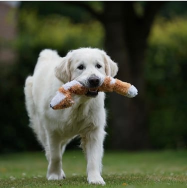 Der Golden Retriever gehört in vielen Ländern zu einer der beliebtesten Hunderassen. Zu seinem typischen Erscheinungsbild gehört: Das langhaarige, glatte oder auch leicht gewellte Fell mit guter Befederung, in den Farben von Gold oder Creme variierend. Ein Schädel mit ausgeprägtem Stop, ein muskulöser Hals und einen tiefer, gut gewölbter Brustkorb. Wegen dem starken Bedürfnis seinem Führer zu gefallen, findet man den Golden Retriever oft als zuverlässigen Blindenführhund oder als nervenstarken Retter bei Lawinen und Erdbebenopfern. Durch sein sanftes und freundliches Wesen eignet er sich besonders als Familienhund. Trotzdem braucht auch ein Hund wie der Golden Retriever Beschäftigung. Da er als Jagdhund nach dem Schuss gezüchtet wurde, eignen sich hierfür besonders Apportierspiele.